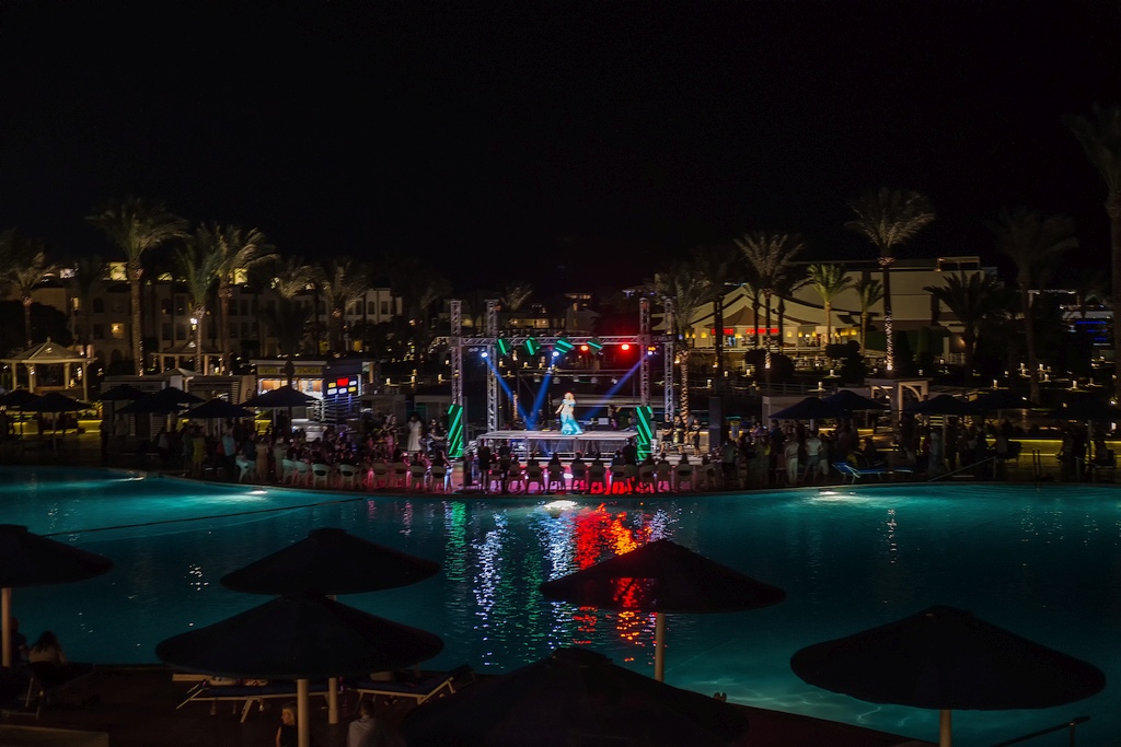 Mittags hatten wir Pizza im Restaurant. Nach der Gesichtsbehandlung gingen wir zum Zimmer und machten Zwischenstopp bei der Castello-Bar. Zum Abendessen waren wir dann mal im internationalen Marche-Restaurant. Hier fanden wir es aber nicht so gut. Der Abend verbrachten wir wieder in der Piano-Bar. Heute hatte man übrigens ein Oktoberfest zur Abendunterhaltung aufgebaut, aber dazu hatten wir keine Lust. Deutsche Volksmusik mussten wir in Ägypten nicht haben. Am Weg zum Zimmer machten wir noch ein Wettrennen: Sie zu Fuß und ich mit dem Boot. Wer eher im Zimmer war. Ich habe knapp verloren.