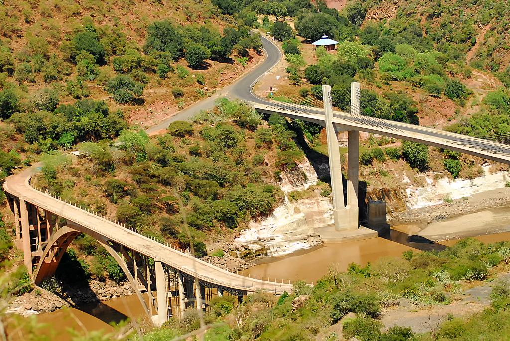 Die Fahrt nach Bahir Da ging weiter und nach mehren weiteren Fotostopps in Höhen von bis zu 3200 mussten wir auf fast null Meter herunter. Dort überquerten wir gegen 11:00 Uhr den blauen Nil, um uns danach wieder auf 2000 Meter hoch zu schrauben.
