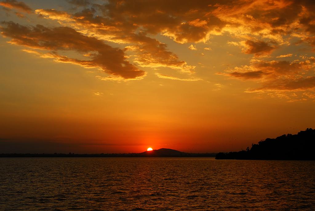 den traumhaften Sonnenuntergang über dem See beobachteten.