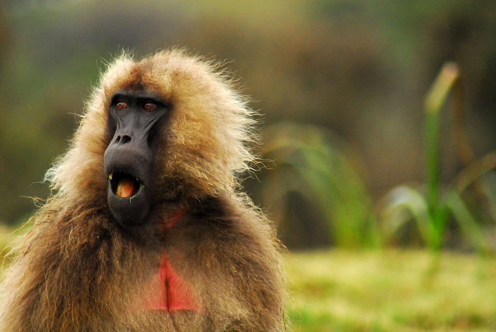 Direkt in der Nähe trafen wir auf en Rudel Dscheladas oder Blutbrustpaviane (Theropithecus gelada).