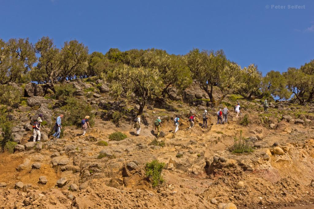 Es war früher Nachmittag geworden und nachdem wir im Restaurant auf der Terasse vorn vor dem Hotel was gegessen und getrunken hatten, Brachen wir mir unserem bewaffnetem Gefolge zu einer zwei stündigen Wanderung durch den Nationalpark auf.