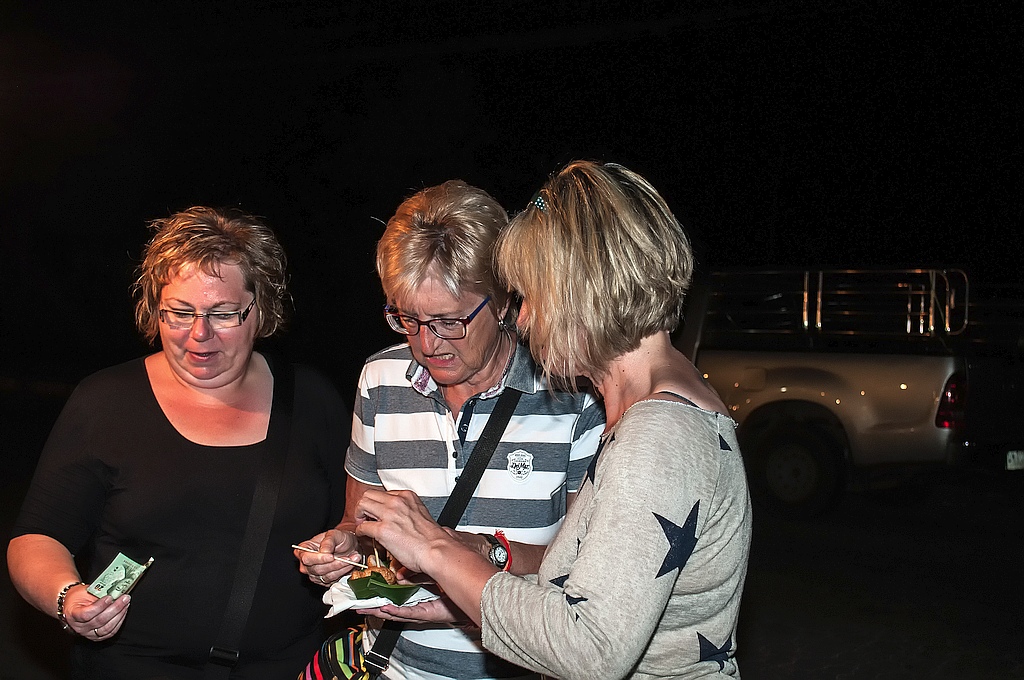 Abends hatten wir alle zusammen ein Abendessen im Hotel auf dem Strand. Damit hatte sich das Personal aber ein wenig überfordert. Das BBQ war zwar gut, aber sie brauchten eine Stunde, um uns zu sagen das die bestellten Vorspeisen (Frühlingsrollen) aus sind. Dann gab es auch nur noch warmes Bier und sie boten uns an, Eis rein machen. Brrr.