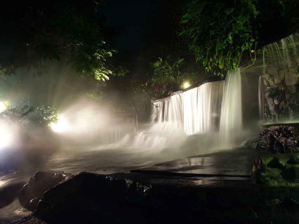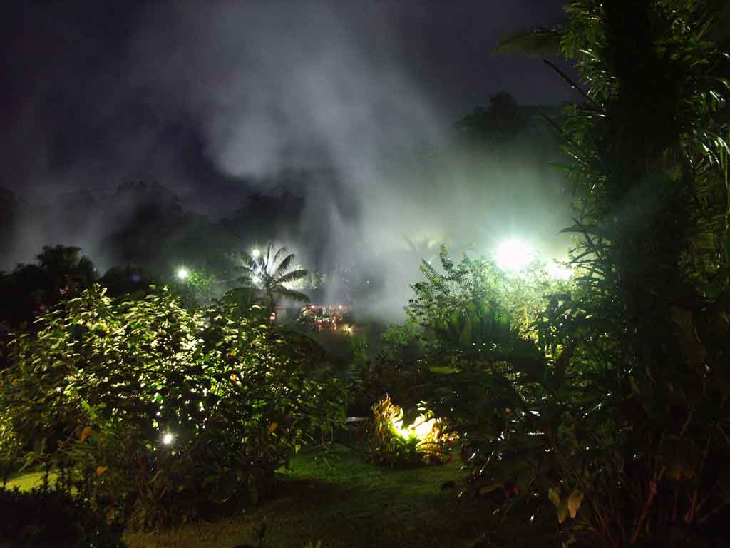 Die Thermalquellen in Tabacon kurz nach 20 Uhr Ortszeit: Die beste Zeit für ein warmes Bad (oder ein kaltes Imperial).Bild: Peter Czemmel