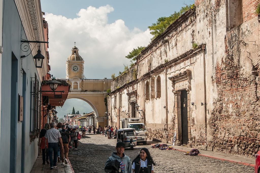 Laut unserem Reiseleiter viel der König allerdings bei einer Schlacht vom Pferd und verstarb. Darauf hin wurde seine Frau die erste Königin von Guatemala. Die Regentschaft dauerte aber nur zwei Tage, denn danach zerstörte ein Erdrutsch weite Teile der Stadt und die Königin starb dabei. Danach wurde die Hauptstadt nach Antigua verlegt.