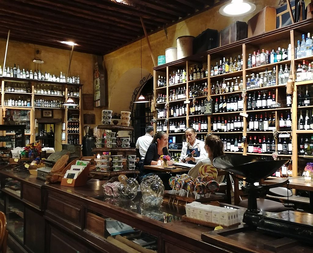 Arco de Santo Catalina", einem alten und berühmten Torbogen. In einem alten Kloster entdeckten wir dann ein Café im Garten, wo man herrlich in einzelnen, kleinen Pavillon einen Kaffee trinken konnten. Es gelang uns, Emilio davon zu überzeugen, dass es ein guter Punkt für einen Kaffee, ein Stück Kuchen und eine Pause sei. Sonst hätte sicher wieder sein Programm straff bis zum nächsten Hotel ohne Pause durchgezogen.