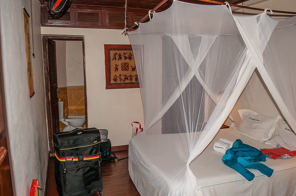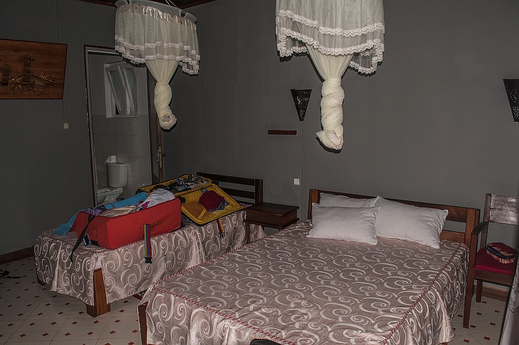 Im Zimmer selbst waren ein Einzel- und ein Doppelbett, über denen Mückennetze angebracht waren.
