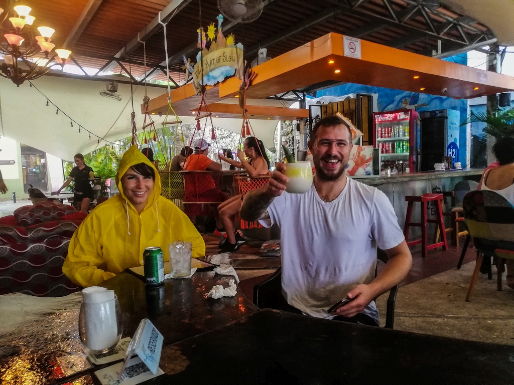 Zwischendurch mussten wir allerdings eine Zwangspause einlegen. Der zu dieser Jahreszeit tägliche Regen zwang uns, in einer überdachten Bar einen Zwangsstop einzulegen und es einfach auszusitzen. Wir merkten, dass unser Reiseleiter das nicht so gut fand, aber er konnte ja nichts dagegen machen, da die Gruppe das entschieden hatte. Er bestellte sich auch nichts in der Bar. Nach etwa 45 Minuten konnte es dann weiter gehen.
