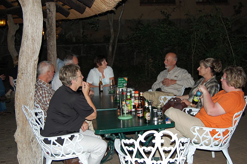 Skukuza Camp standen bereits unsere Koffer. Dafür hatte unsere Reiseleiterin gesorgt. Nun hatten wir zuerst eine Dusche nötig. Danach gingen wir los, um etwas zu Essen. Es gab ein teures Restaurant mit Buffet und einen preiswerten Imbiss, wo u.a. auch Burger, aber auch einfache Tellergerichte gemacht wurden. Wir setzten uns an einen Tisch im Freien vor dem Imbiss und kauften uns leckere Burger und kalte Getränke. Viele Fledermäuse leben unter den Sonnenschutzdächern, unter denen die Tische standen. Daher trugen wir den Tisch etwas zur Seite. Wir wollten ja nicht noch etwas auf dem Teller haben, das wir nicht bestellt hatten....