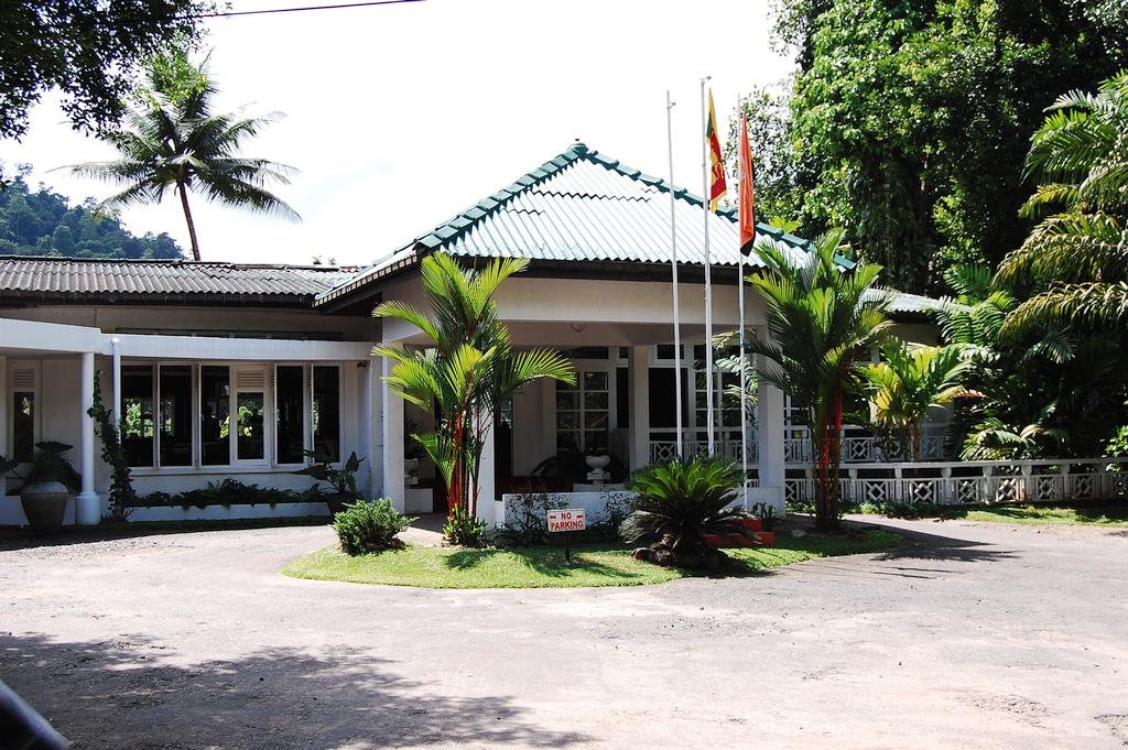 Das "Kithulgala Rest House" in Kithulgala hatte 4 Lodges mit Klimaanlage und 15 Zimmer ohne. Wir hatten Lodge Nr.3 mit Klimaanlage, Dusche, Fliesenboden, einem verschlossenen Kühlschrank (keiner fragte uns, ob wir die Mini-Bar eventuell nutzen wollten), einer 3x6 Meter grosse Terasse, einem Deckenventilator und einer Sitzecke in einem separaten Raum.