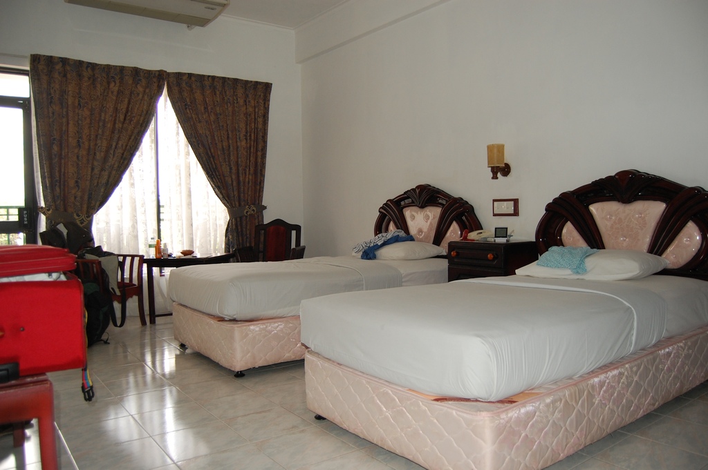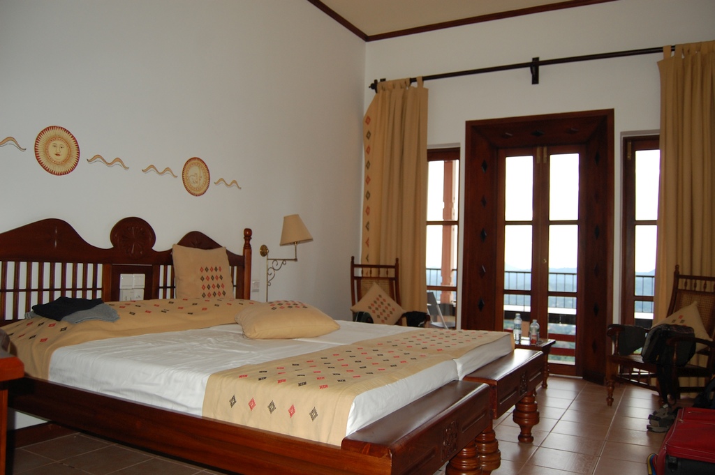 Unser grosses Zimmer Nr. 70 war ausgestattet mit 2 Betten, Klimaanlage, Balkon mit Blick auf den See, TV, einer (mal wieder) abgeschlossenen Minibar, einer grossen Dusche im Bad, einer Sitzecke und einem Schminktisch. Das Zimmer hatte einen gefliesten Boden und es war ein Aschenbecher vorhanden (also Rauchen erlaubt).