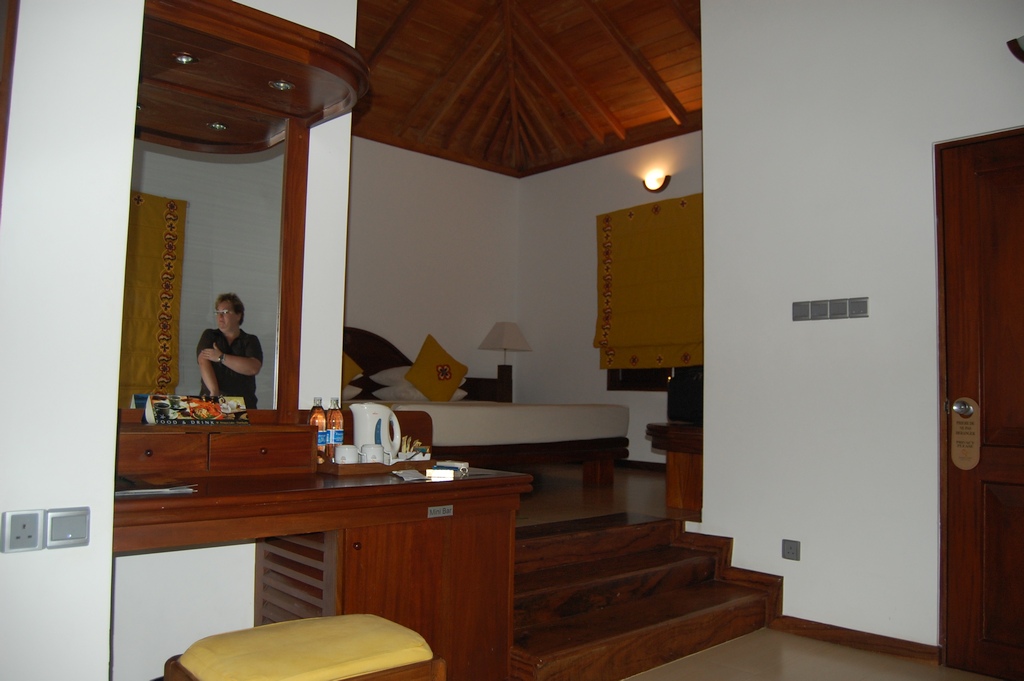 Das 'Amaya Lake' in Dambulla liegt an einem Stausee, dem "Kandalama Tank". Unser Bungalow Nr. 81 hatte 2 Ebenen und war sehr schön eingerichtet und auch komplett ausgestattet: Klimaanlage, gefliesste Böden, Minibar, Sitzecke, Doppelbett, Sumatra-Rain-Dusche und LCD-TV. Alles sah aus wie neu. Die Anlage hat auch einen gepflegten Pool und das Essen war wirklich gut.