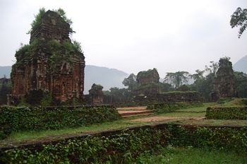Nach der Mittagspause fuhren wir mit dem Reisebus in das 60 Kilometer entfernte My Son im Hochland. Bei den Strassenverhältnissen dauert so eine Reise ca. 1 1/2 Stunden. Während der Fahrt verteilte Thai unsere Flugtickets nach Südvietnam. Diese hatte er am Vortag eingesammelt, um sie Bestätigen zu lassen. Das letzte Stück des Weges zu den alten Cham-Tempelanlagen in My Son fuhren wir mit einem alten US-Army Jeep. Die Beschriftung der Army war auf dem Wagen noch gut erhalten. Die Ansamlung von Tempeln besteht aus mehreren Anlagen, von denen aber nur 2 besichtigt werden können.