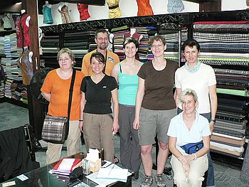 Zwischendurch sahen wir uns noch an, wie Seide von Seidenraupen gewonnen und versponnen wird. Aus der Seide werden hier sehr schöne Bilder in Handarbeit gestickt (die Arbeitskraft kostet hier so gut wie nichts).