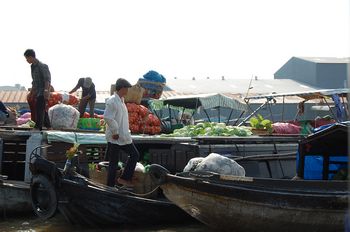 Schwimmender Markt im Mekongdelta.
