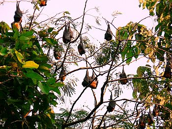 Weiter ging es zum buddistischen Flughunde-Tempel. Leider waren Teile davon vor 3 Monaten einem Brand zum Opfer gefallen. Für uns waren hier aber die Flughunde am interessantesten, die in einer grossen Kolonie in den Bäumen leben.