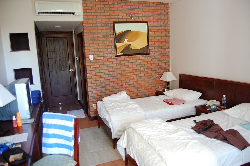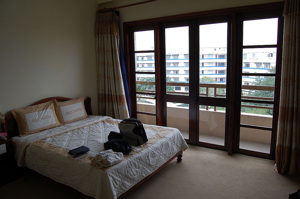 In dem 3 Sterne Hotel Ngoc Huong in Hue verbrachten wir eine Nacht auf der Durchreise. Da es zur Zeit umgebaut wurde, mussten wir den Hintereingang benutzen, wo eine provisorische Lobby installiert war. Beim Abendessen im Dachrestaurant (7. Etage) beobachteten wir eine Ratte auf der Flucht. Die Klimaanlage hatten wir auf 23 Grad gestellt. Als bei unserer Wiederkehr im Zimmer nur noch 15,3 Grad waren, stellten wir diese endgültig ab. Die Zimmer waren aber sauber, hatten einen Balkon und waren gut ausgestattet.