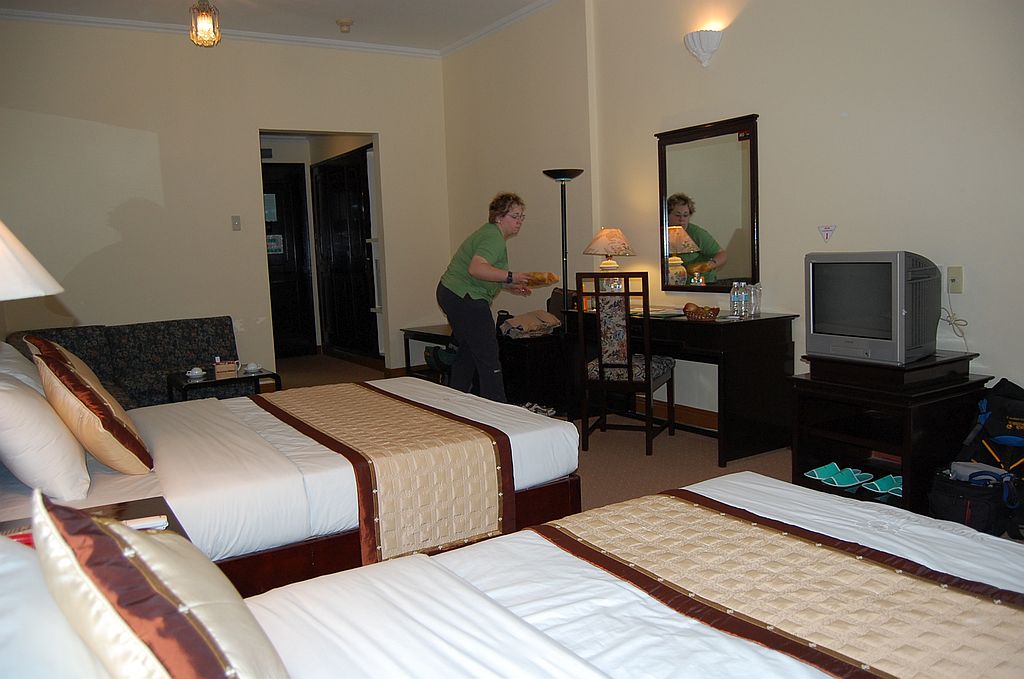 Das ICC-Hotel in Hanoi hatte 3 Sterne. Es lag im Regierungsviertel von Hanoi direkt bei den Botschaften, dem Ho-Chi-Minh Mausoleum und dem Regierungssitz der Partei. Es war ein 70er-Jahre-Bau, in dem früher "Genossen" bei Staatsbesuchen untergebracht wurden. Es gab auch eine Bar im ersten Stock, die 24 Stunden geöffnet hatte. Die Zimmer und das Frühstück waren nichts besonderes, aber zum Übernachten, Duschen und Frühstücken (Toast mit Marmelade, salziger Bacon und Omlett ohne Salz) war es OK. Vom Hotel aus konnte man die Altstadt gut zu Fuß erreichen (Stadtplan nicht vergessen!).